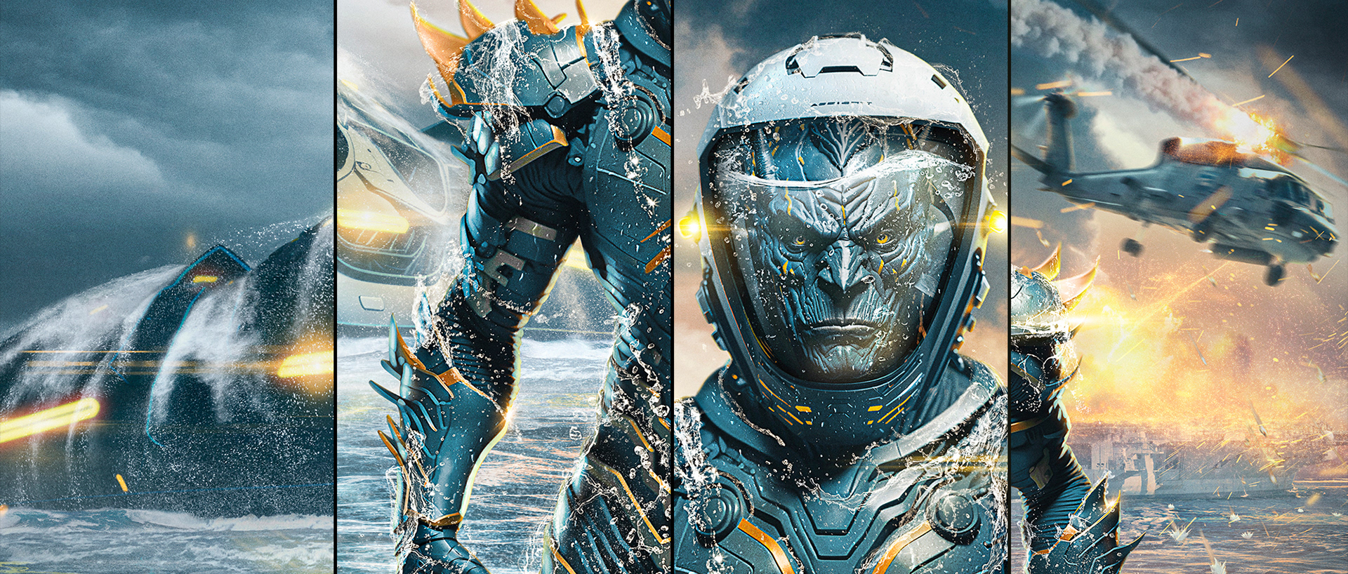 Concept art. An image depicting an apocalyptic scenario. The invasion of a people who live in the depths of the ocean and emerged to destroy humanity.